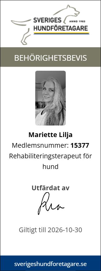 Som Rehabiliteringsterapeut jobbar jag inom djurens Hälso- och Sjukvård utan att tillhöra djurhälsopersonal, jag räknas som övrig personal.